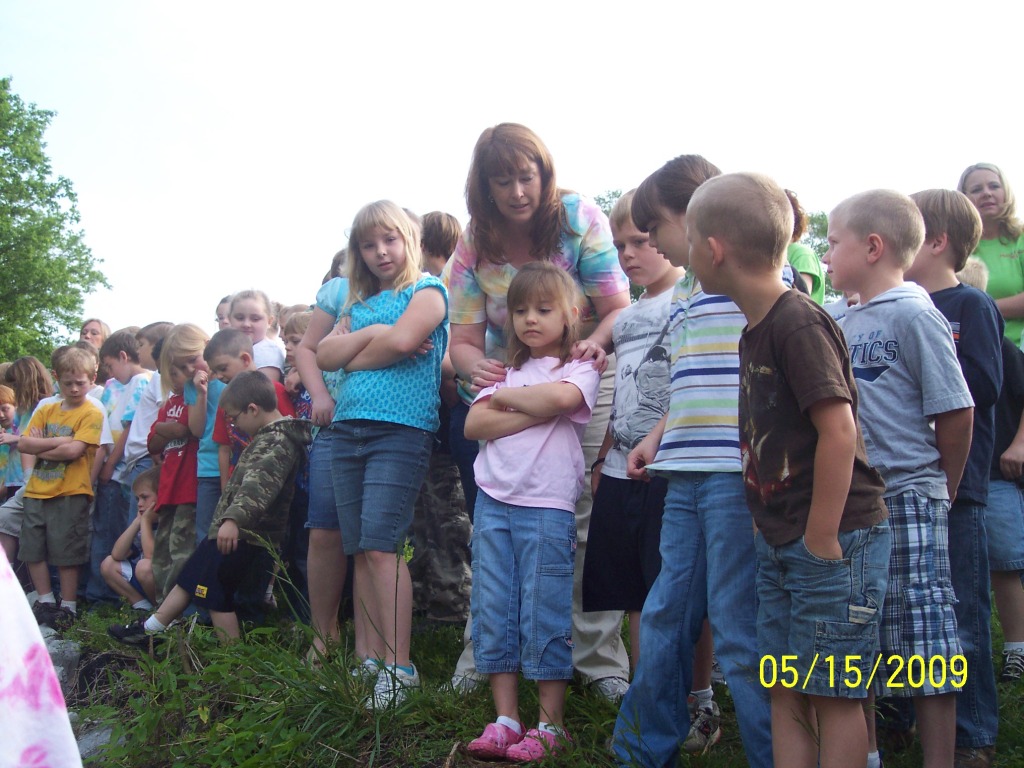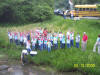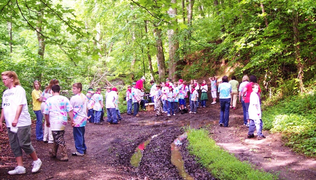 Briceville students under the direction of their science teacher, Ms. Gladys Stooksbury, have been raising rainbow trout from eggs in an indoor hatchery and American chestnuts in an indoor nursery. During the 9th annual history/ecology field trip for the 4th and 5th graders, trout were released to Coal Creek and American chestnut seedlings were planted near the abandoned Fraterville Mine. Approximately 100 trout fry were released at each of the locations as follows: