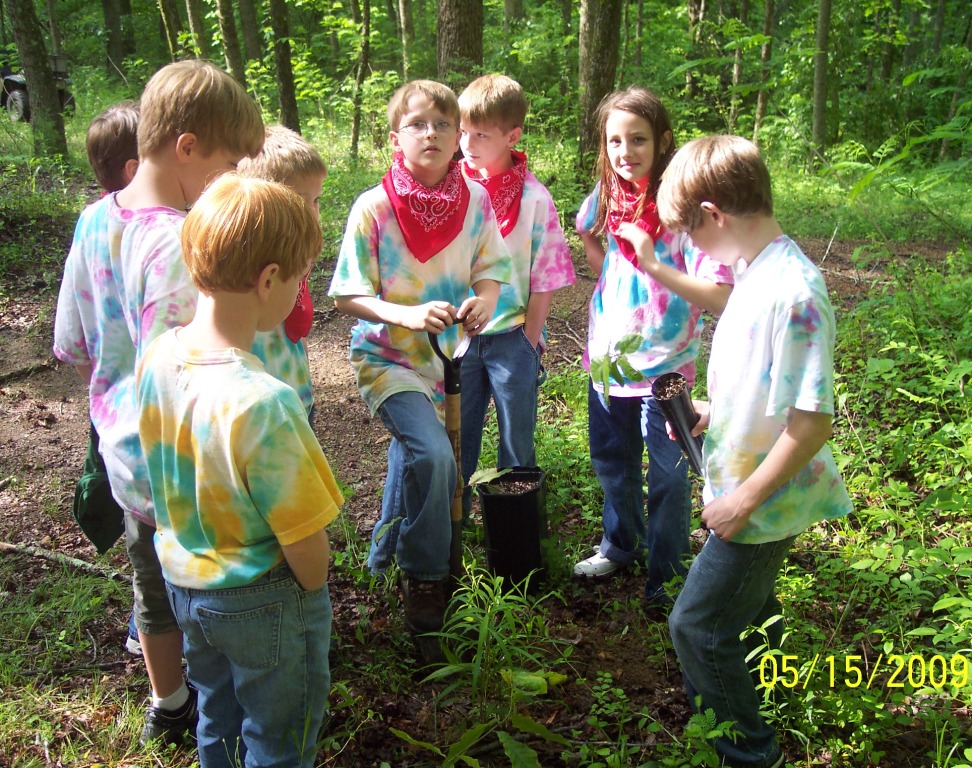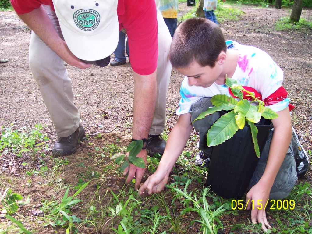 In honor of the miners who died at Fraterville, we planted pure American chestnut seedlings that students grew in their indoor nursery over the past 3 months. We are experimenting with planting techniques and locations using the pure American chestnuts to gain experience for the day when blight-resistant hybrids are ready for planting. |