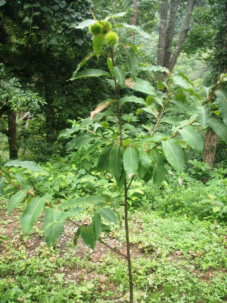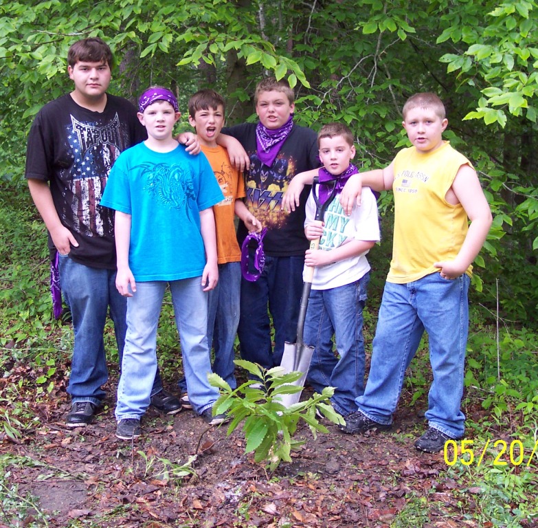 UPDATE: JULY 2012!! Chestnut trees that we planted on this field trip are growing and producing burrs!! --->>> Click on image to enlarge Photos taken by Gary Tackett |