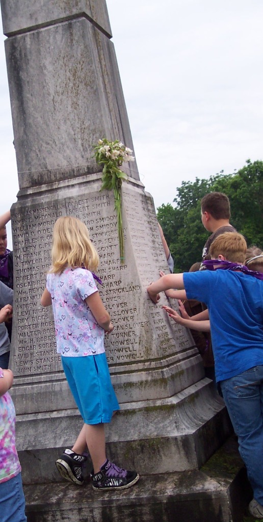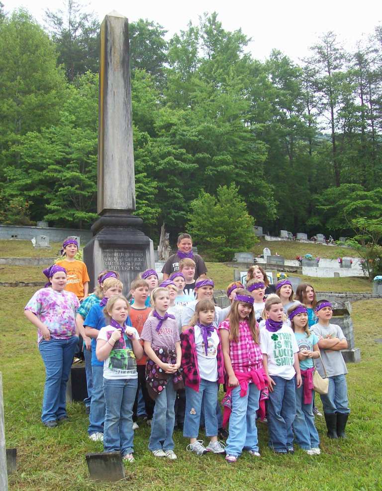 Students cut trees and removed vegetation from around his headstone and read the farewell message of Eugene Ault at Briceville Church and Cemetery: |
