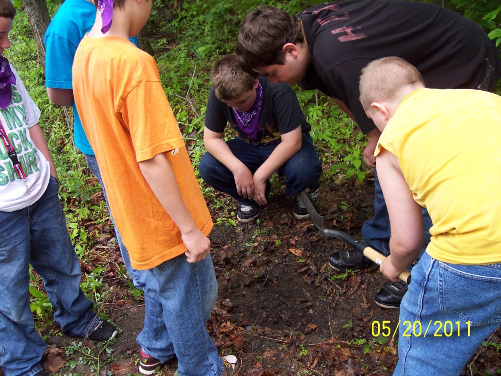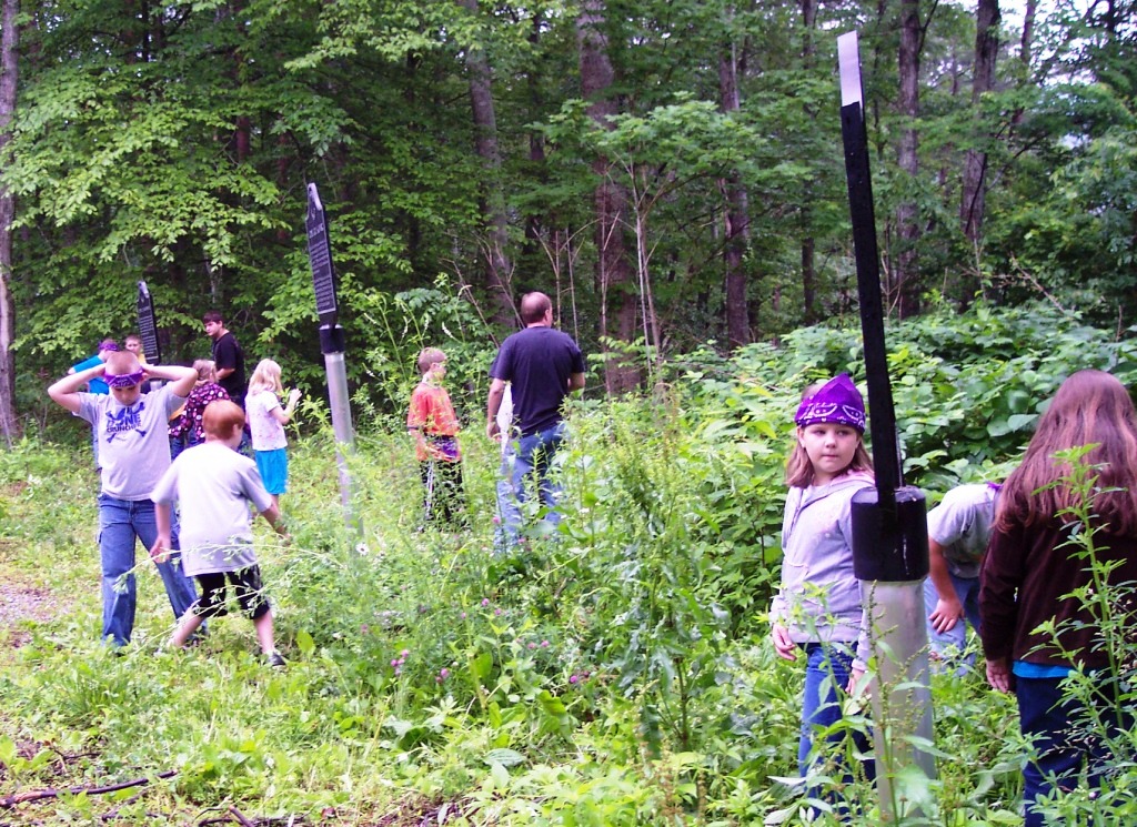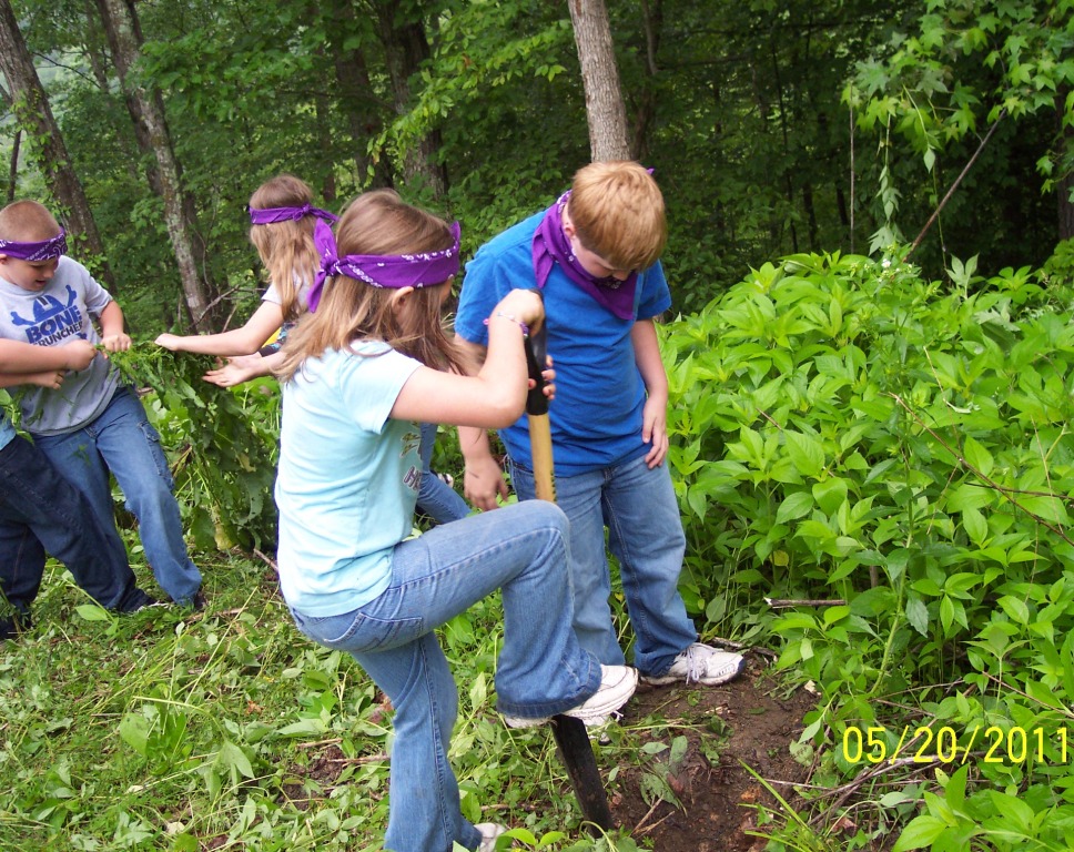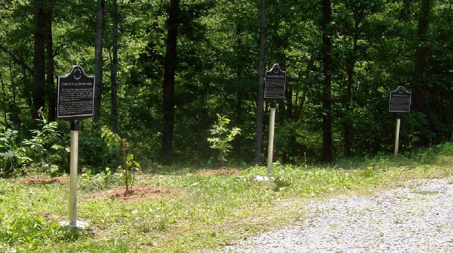 Miners of Coal Creek rebuilt from the ashes of the Coal Creek War (1891 to 1892) and the Fraterville Mine explosion (1902), but disaster struck again on 9 December 1911 when the Cross Mountain Mine exploded. December 9, 2011, will mark the 100th anniversary of the Cross Mountain Mine Explosion and Rescue, so Briceville students visited historical sites associated with the event as described at http://www.coalcreekaml.com/Legacy5.htm. We also cleared the area around historical markers at Militia Hill and planted American chestnuts in the on-going restoration of the site. |