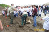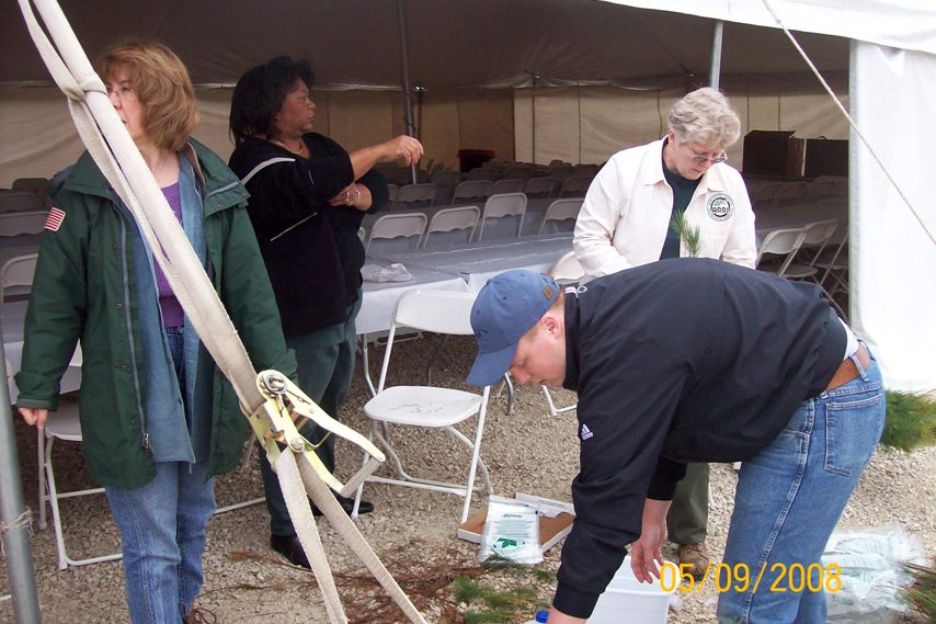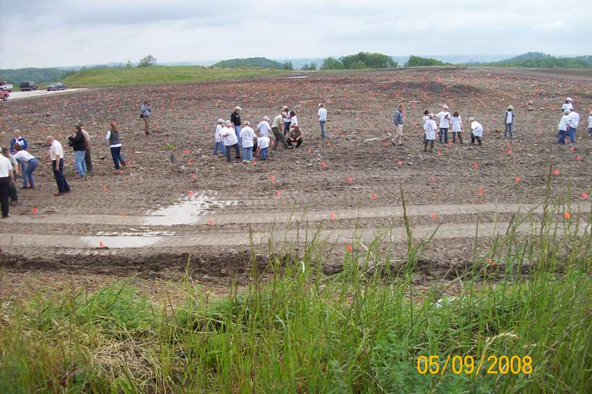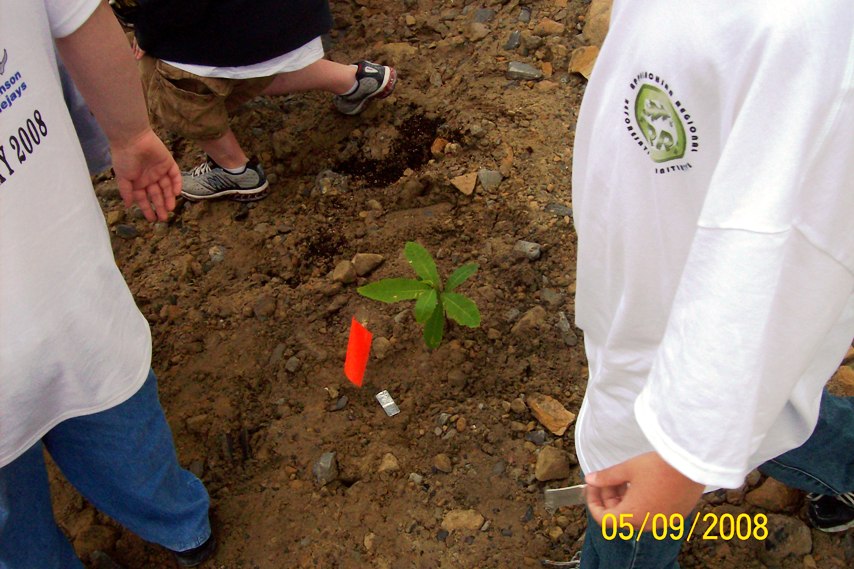 Scott Freidhof, President of the Kentucky Chapter of the American Chestnut Foundation summarized the state’s progress in developing orchards of blight-resistant American chestnut hybrids. He challenged attendees to find native American chestnuts around Hazard that can be incorporated into the backcross program. The planting of pure American chestnut seedlings on mine land prepared by the Forestry Reclamation Approach at the Tip Top Mine will be judged to aid in the planting of blight resistant hybrids in the future. Students marked the seedlings they planted with a metal tag so they can observe how they grow on subsequent visits. |