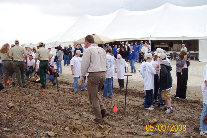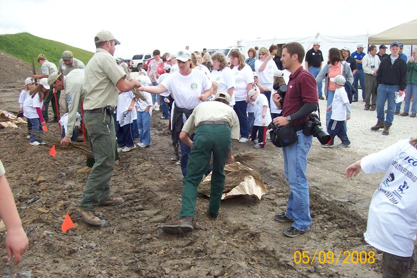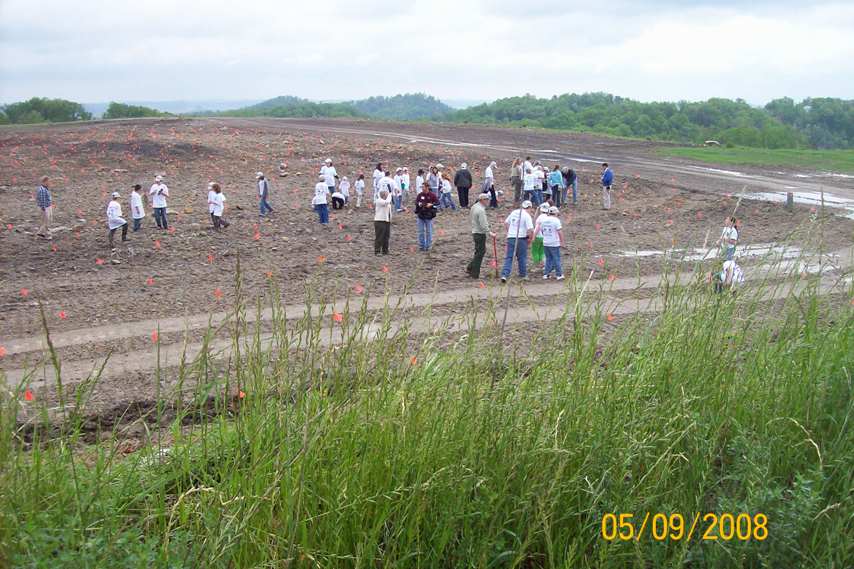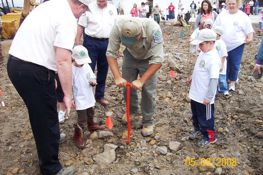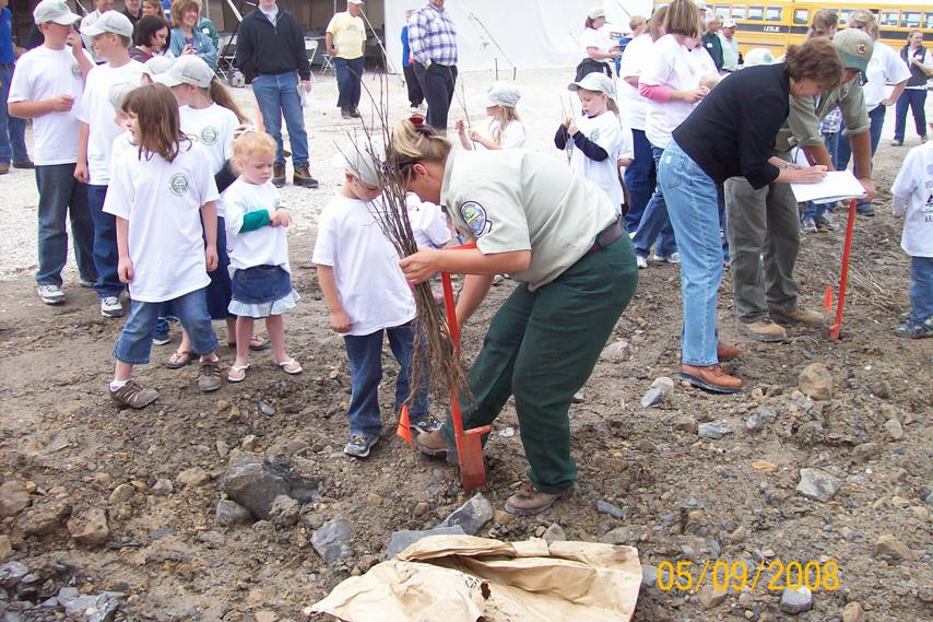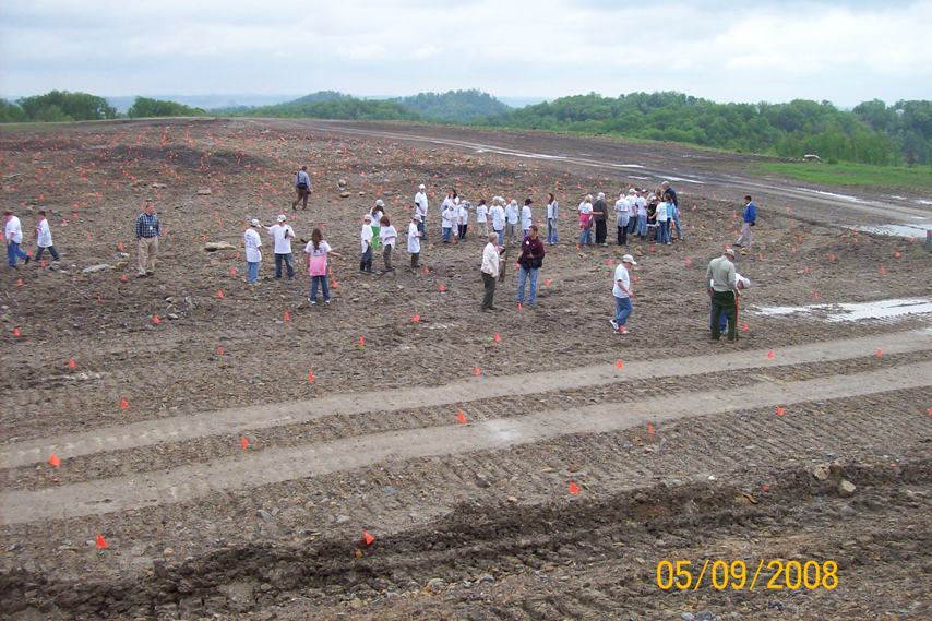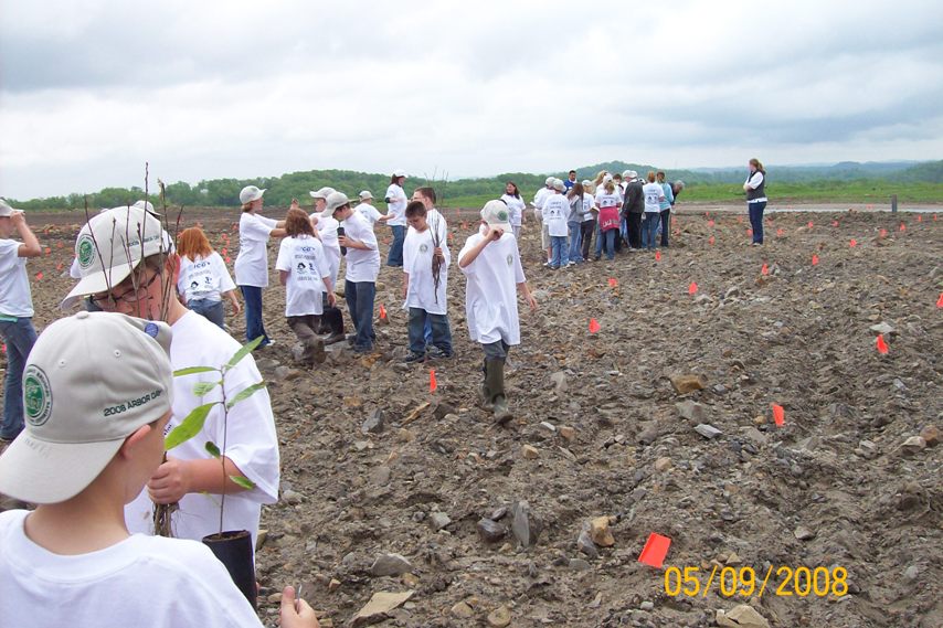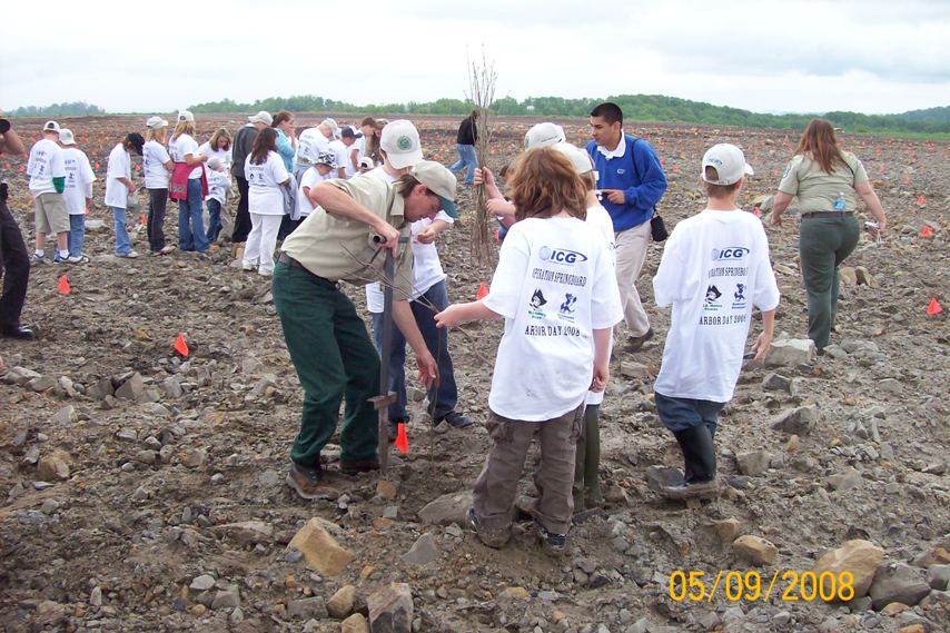 Students from W.B. Muncy and Robinson Elementary Schools found Lost Mountain quite different than what had been portrayed in Reece’s book. Now that mining is complete and reclamation is in progress, they participated in an Arbor Day event by planting American chestnut and oak seedlings and learned about future plans for the site by International Coal Group (ICG) and others. |