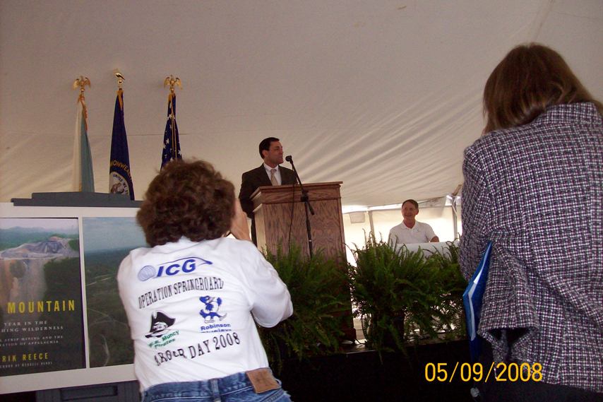 Kentucky’s Lt. Governor Dan Mongiardo, M.D., whose grandfather emigrated from Italy to Kentucky in 1910 to work in U.S. Steel’s Benham Mine, discussed his vision for adventure tourism in the state. According to Dr. Mongiardo, a surgeon makes a scar in his or her work, just as a miner does. In both cases, success is judged by the end product after the scar heals. Tourists can travel roads and trails on reclaimed mine land by hiking, biking, or on ATVs or horses to hunt, fish, observe the largest elk herds east of the Mississippi River, and experience all manners of outdoor activities. |