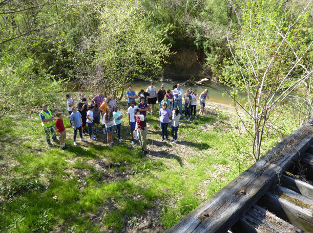 | At Drummond Bridge, students learned how miner Dick Drummond was accused of killing a soldier during the Coal Creek War due to an argument over the affections of a girl. Eleven soldiers were arrested for removing Drummond from his boarding house and lynching him at the bridge. During the trial in Knoxville, 32 witnesses gave conflicting testimony, which prompted a judge to dismiss the case against the soldiers. | |