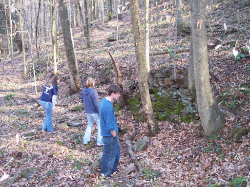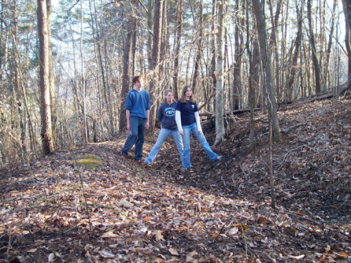 The hike up to Convict Miners Cemetery was strenuous carrying only your own weight. The trek illustrates the difficulty the convict miners must have faced when burying one of their own. After visiting the mine site, Jacob, Cassie, and Jennifer walked the trenches at Fort Anderson on Militia Hill that had been dug by the Tennessee Militia and convicts during the Coal Creek War. |