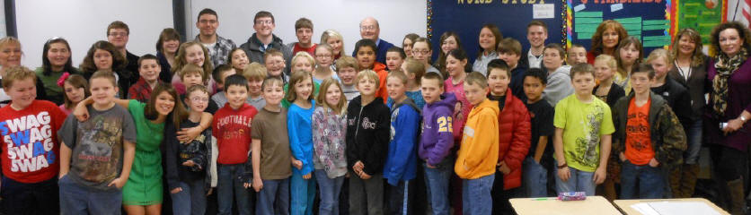 After our visit to Briceville School, Barry Thacker made a presentation about the rich history of Coal Creek to the 7th graders at Lake City Middle School. Anderson County Mayor Terry Frank joined us and the students got to meet a real mayor for the first time. Mayor Frank has a Welsh surname -- Phillips -- and her family may have been related to the early immigrant Welsh miners who settled Coal Creek. Mayor Frank said, "Barry has a way of presenting the information in an exciting way that makes history come alive for young people." |