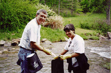 Margy White and Danny Ellis, from OSM, cleaning up trash