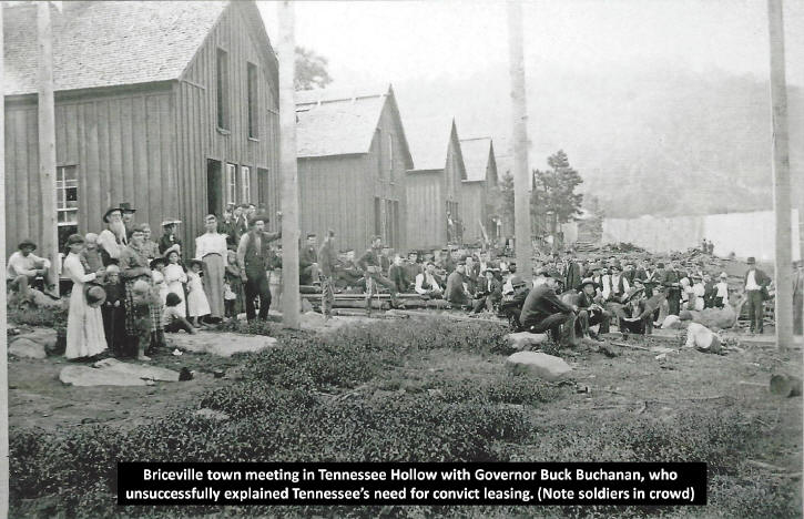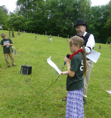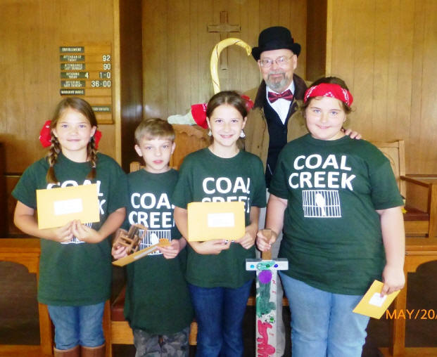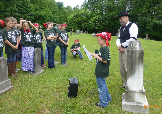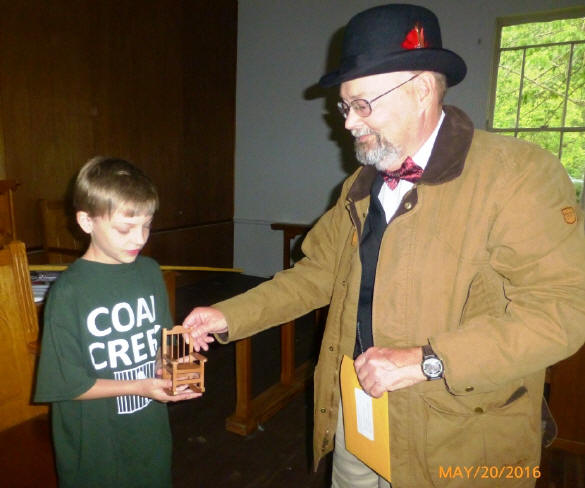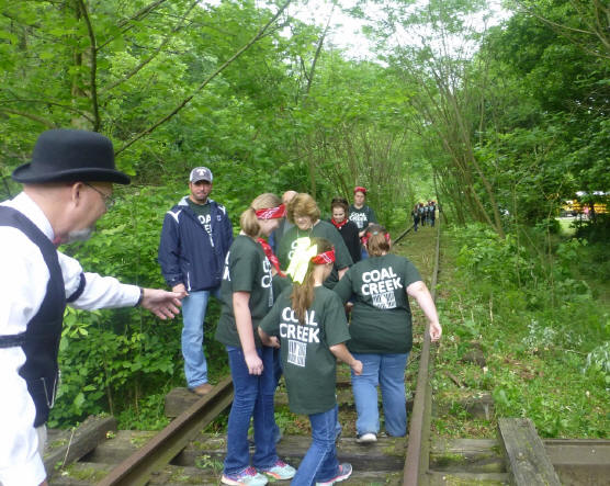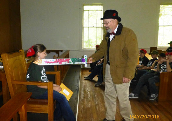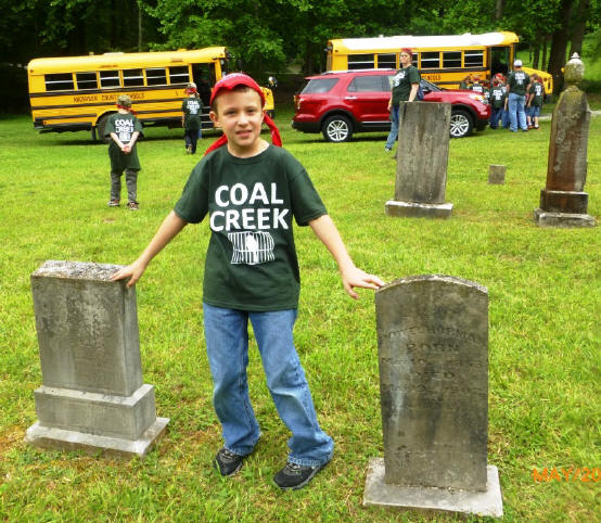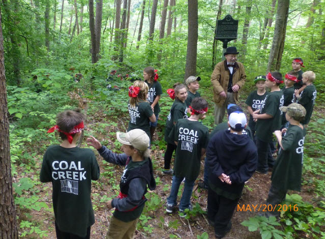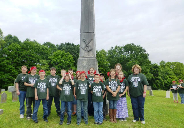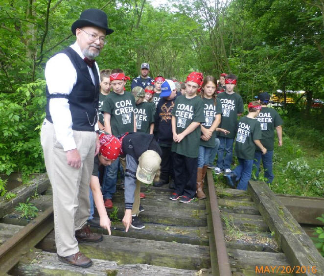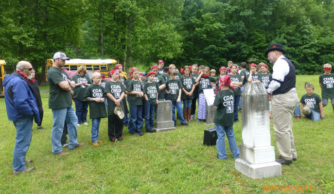 Students from Briceville School's fourth and fifth grade classes got a lesson on Coal Creek history from Welsh miner/engineer David R. Thomas, who was born in Carmarthen, South Wales in 1839. Mr. Thomas told how he came to Coal Creek after the American Civil War as part of a contingent of Welsh miners who developed a coal mine to fuel the mills of the Knoxville Iron Company. He lost his job to convict labor in 1877, but found work in the Fraterville Mine where he later became an apprentice engineer to C. G. Popp, which qualified him for his job as an engineer with the Provident Insurance Company. Mr. Thomas explained how miners met at Thistle Switch, located between Briceville and Fraterville, in 1891, to devise a plan for ending convict leasing. After the meeting, the miners captured the convict stockade in Briceville. Miners marched the guards and convicts along the railroad tracks to the train depot in the town of Coal Creek and put them on a train to Knoxville. They then learned how Governor Buck Buchanan visited Briceville at a meeting with miners in Tennessee Hollow to justify convict leasing. Miners did not buy his explanation, which led to additional hostilities. |