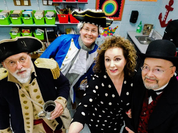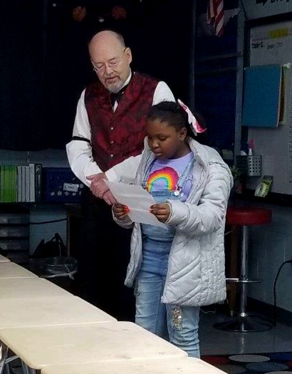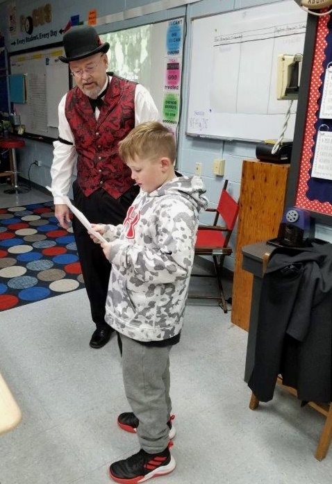 | The Coal Creek Watershed Foundation was invited to Claxton School’s Family Fun Literacy and Social Studies Night on 23 January 2020. Barry Thacker PE (in the character of Coal Creek’s Welsh coal miner David R. Thomas) presented historic events of the Coal Creek War and the Fraterville and Cross Mountain Mine explosions. Barry had several of the students participate by reading the farewell messages of Jacob Vowell and Powell Harmon. Some of the visitors had family from the Coal Creek area who were coal miners. We were invited by our longtime friend Gladys Webb Stooksbury who we met at Briceville School in 2000 and was part of the literacy staff there through 2009. Gladys was in the character as a slave on the Underground Railroad. We also were excited to see 2008 Coal Creek Scholar recipient Jessica Lynn McKinney (Hayes) who is a teacher at Claxton School. Lots of historic characters were part of this program. | |