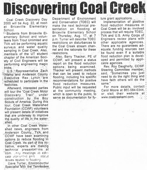 Copyright© Coal Creek Watershed Foundation, Inc. 2000 through 2021